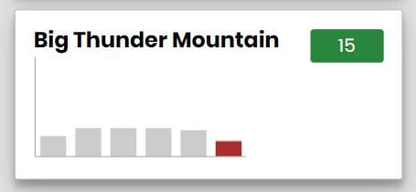 Le graphique de tendance est la petite astuce que vous allez avoir envie d'utiliser. Il permet de connaître la moyenne des temps d'attente sur les 3 dernières heures (par créneau de 30 minutes). Par exemple, Peter Pan à Disneyland Paris est actuellement à 40 minutes. Ca peut paraître long mais si la moyenne était à 1 heure auparavant et sans Fast Pass, ça vaut le coup d'y aller.