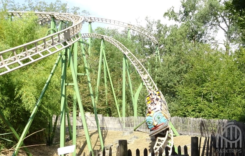 Pour la suite, vous pourrez continuer avec la montagne russe tournoyante "Le Twist" qui est identique à la montagne russe "Dwervelwind" dans le parc d'attractions Toverland aux Pays Bas. Le parcours permet d'avoir de bonnes sensations et d'avoir le temps pour quelques rotations. Cette montagne russe des dans la partie la plus boisée du parc, presque cachée, l'endroit est très joli.