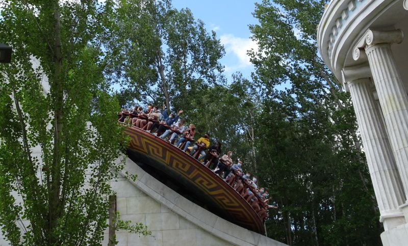 Dans les dernières attractions ajoutées (on vous rappelle que ça fait un moment qu'on n'y est pas allé), il y a un disco coaster nommé Discobélix. Il s'agit de cette attraction où vous montez à califourchon sur un siège à la périphérie d'un disque qui tourne sur un parcours en forme de vague (pas évident à décrire en fait). Dans cette version, c'est Obélix qui s'entraîne au lancer de disque pour les jeux olympiques. La thématisation est très jolie mais la file d'attente mériterait mieux. Des effets de feu et d'eau renforce l'immersion dans l'attraction qui procure de bonne sensation. Attention tout de même pour ceux qui sont fragiles de l'estomac, ça tourne pas mal.