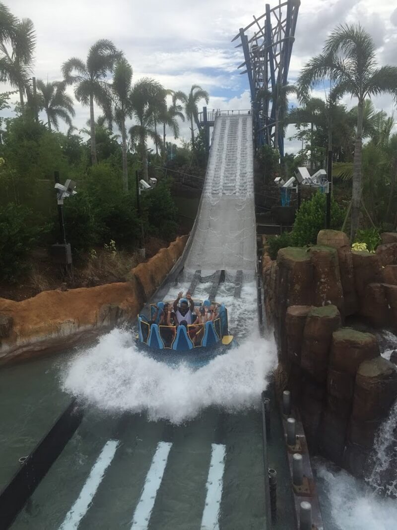Congo River Rapids à Busch Gardens Tampa, un parcours de bouées classique sans surprise qui a ouvert en 1982. Il a tout d'une promenade dans une rivière plutôt calme. La seule projection d'eau se fera à la fin grâce à un jet qui sert à diriger les bouées vers le tapis ascensionnel et qui est mal réglé.