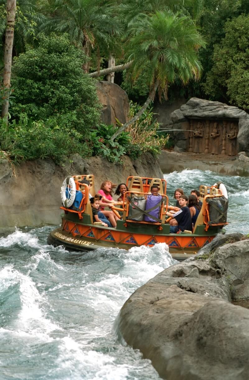 Kali River Rapids à Animal Kingdom de Walt Disney World, même si c'est une très belle attraction aquatique, Disney veut avant tout faire passer un message écologique avec la protection des forêts tropicales. Face à la déforestation galopante, Disney fait prendre conscience de la protection de la nature et fait vivre aux visiteurs une expérience mouvementée à bords de bouées de 12 places. Les éclaboussures sont malheureusement peu nombreuses et il faut avoir la chance d’être bien placé dans l'embarcation pour être mouillé. Le plus de cette attraction, c'est sa chute de plus de 9 mètres pour un maximum de sensations fortes !