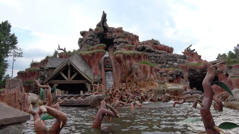 Splash Mountain au Magic Kingdom de Walt Disney World : L'attraction aquatique la plus connue et la plus emblématique des parcs Disney, avec ses 103 animatronics, vous ne saurez plus où donner de la tête pour tous les voir, à moins de faire plusieurs tours. Les décors somptueux sont tirés du film Mélodie Du Sud, peu connu en France, avec des animaux et des paysages animés. Les bûches dévalent un circuit de 866 mètres avec un total de 3 chutes dont la dernière du haut de ses 17,5 mètres.