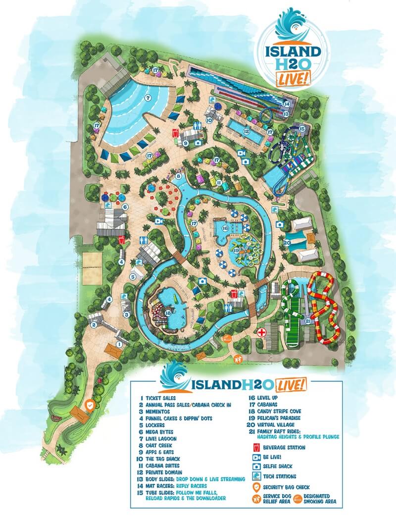 Nommé IslandH2o Live !, il est donc situé dans le Resort. Les visiteurs pourront s'y rendre en empruntant une navette depuis l’hôtel ou y aller à pied en traversant la rue commerçante. Tout ce dont vous avez envie se trouve là bas, une rivière calme, une grande piscine à vague, une multitude de toboggans pour tous les goûts.