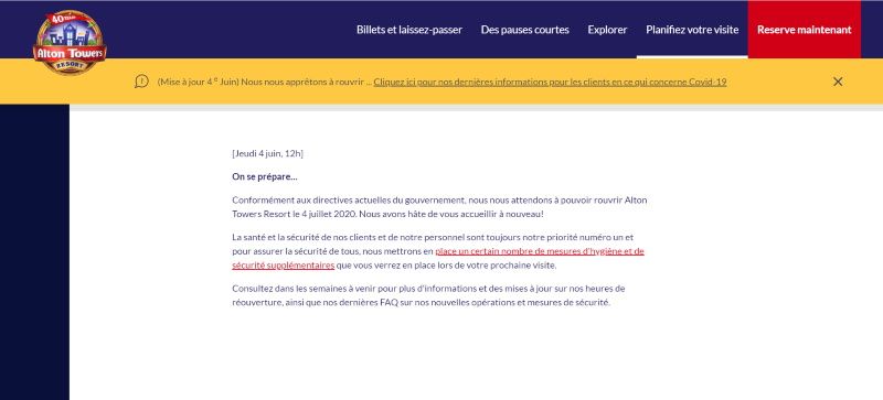 Date d'ouverture des parcs d'attractions en Grande Bretagne en 2020
