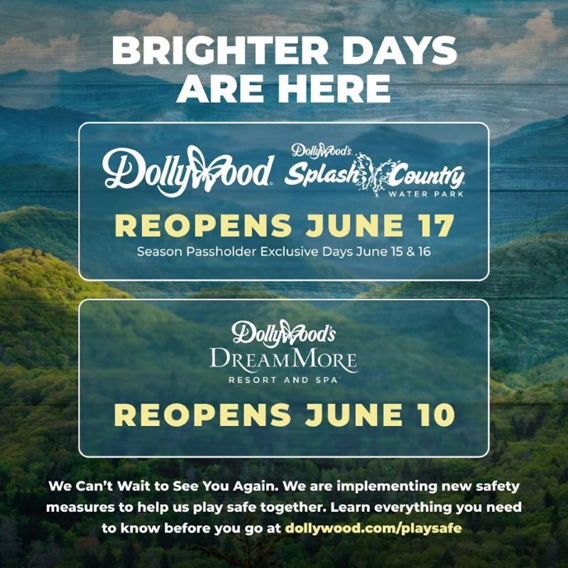 Dollywood et son parc aquatique Splash Country dans le Tennessee ouvrent le 17 juin, le 15 et le 16 juin pour leurs abonnés.