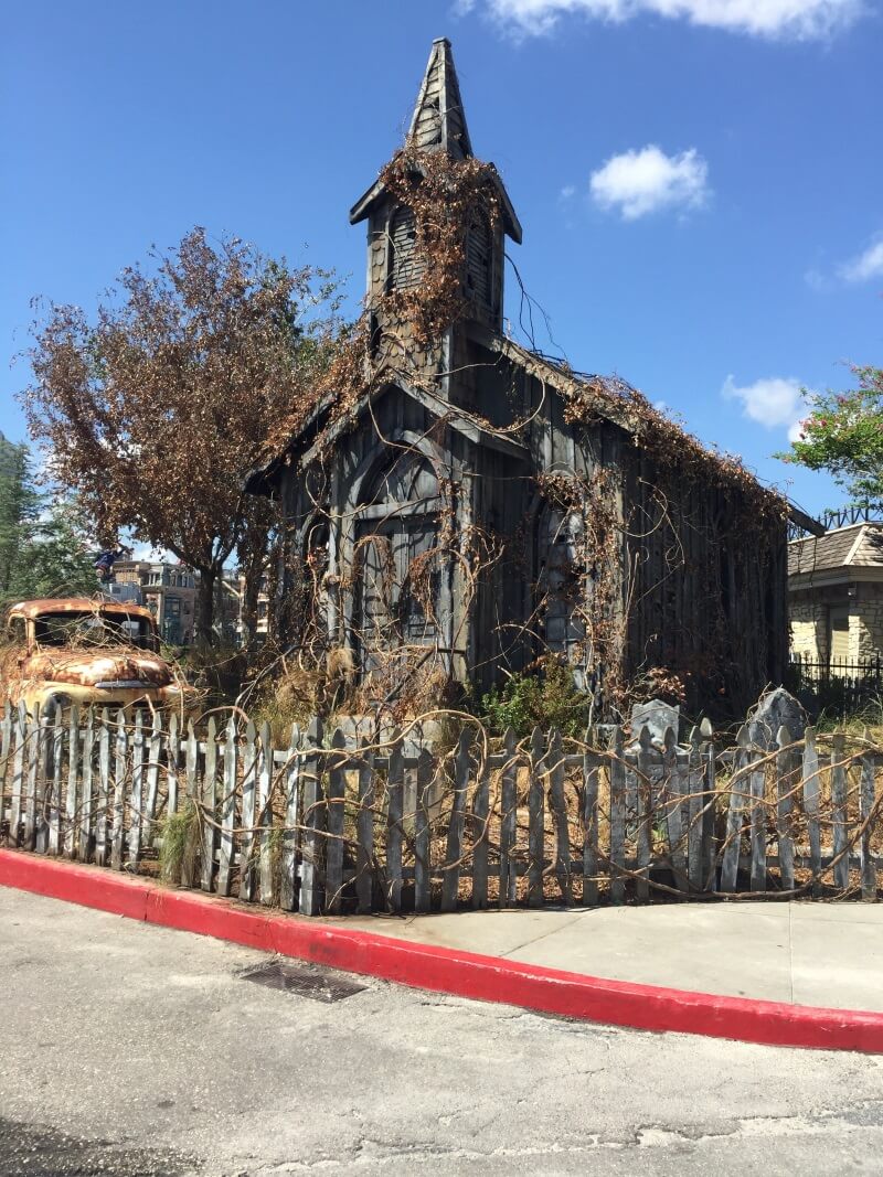 un décor lugubre vu de jour dans le parc Universal Studio Orlando