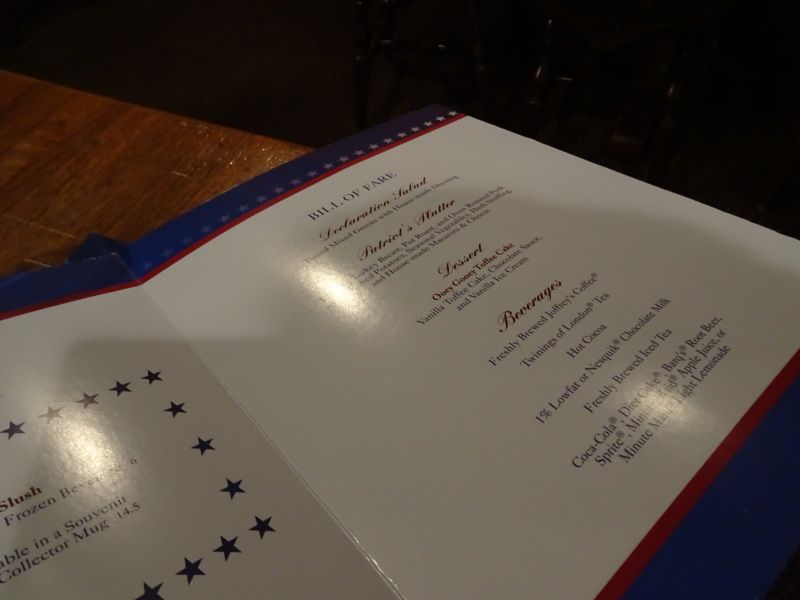 Notre repas au Liberty Tree Tavern du Magic Kingdom à Walt Disney World