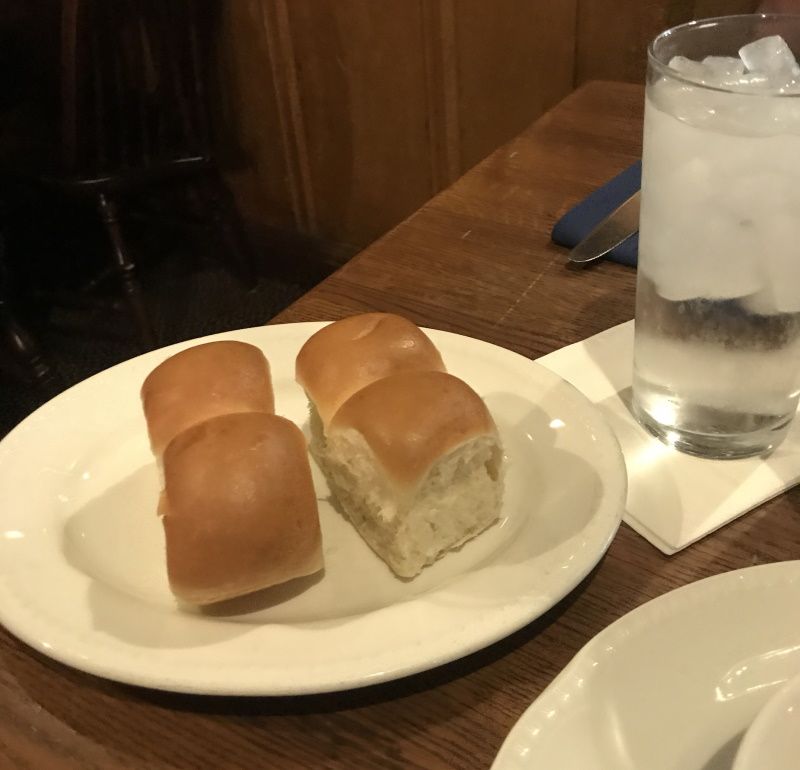 Lorsque l'on arrive dans le restaurant, on nous installe sur des bancs devant une vieille cheminée, le décors est typique des Etats unis du début du siècle. La placeuse nous appelle par notre nom de famille et par notre pays d'origine et tout l'assistance applaudie, c'est un accueil surprenant mais très chaleureux. Elle nous conduit à notre table et nous donne rapidement le menu et quelques rapides informations.