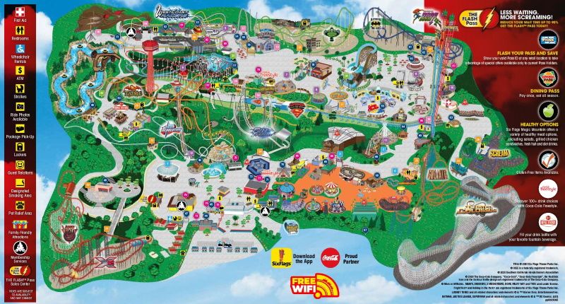D'ailleurs, depuis ces images, vous pourrez constater que le parc a énormément changé, comme les montagnes russes visibles, Revolution est devenu New Revolution avec de nouveaux trains et la double montagne russe en bois Colossus transformée en double montagne russe hybride par Rocky Mountain Construction (encore eux !), le Twisted Colossus est vraiment impressionnant avec son double parcours en boucle de Möbius et sa section high five.