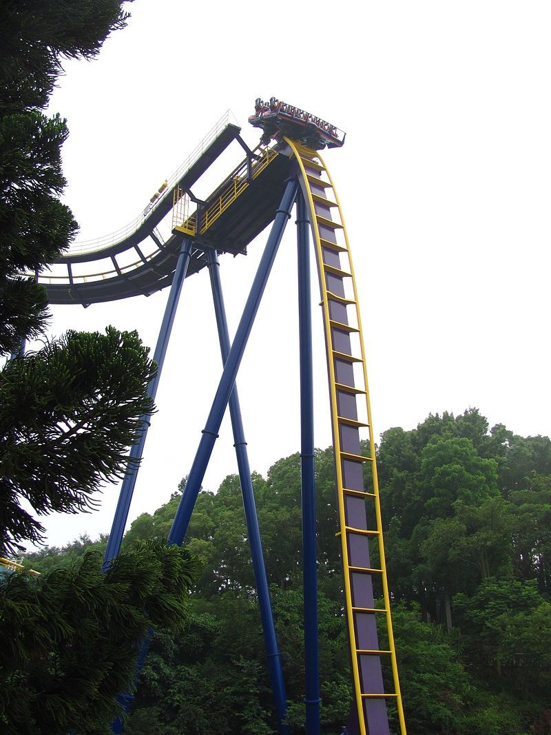 Le parc d'attraction Liphpao Discovery World se compose de trois zones distinctes. La zone Popa Kingdom pour les enfants, la zone Magic Forest et enfin la zone Exciting Paradise qui héberge l'une des montagnes russes qui nous intrigue le plus au monde, le fameux Gravity Max. C'est le seul modèle de Tilt Coaster de Vekoma a avoir été construit. Sa particularité, comme vous le voyez sur la photo ci dessous, c'est d'avoir une plateforme qui en haut du lift, fait basculer le train à 90 degré. Vous êtes donc bloqué à la verticale pendant quelques secondes ! Vous êtes ensuite lâchés dans la descente qui continue à 4 mètres sous terre avant d'entamer un énorme looping. S'ensuit une spirale à 360 degrés et voilà déjà les freins finaux. Ça doit réellement être une superbe expérience !