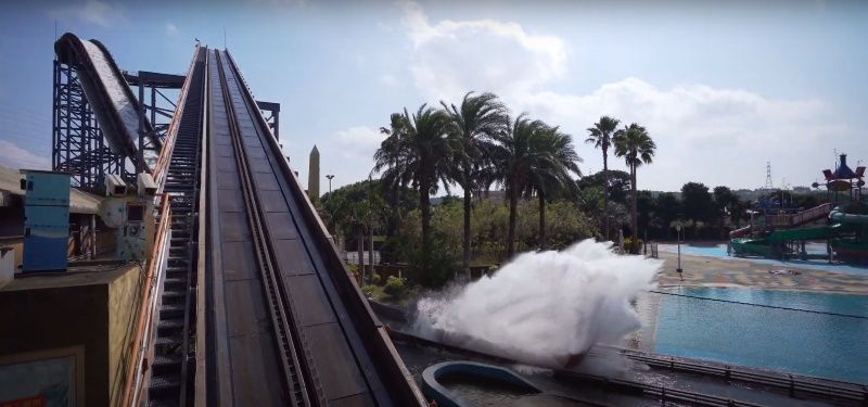Vue sur le gigantesque Flume et le U-Shuttle Coaster, crédit Befreetour.com