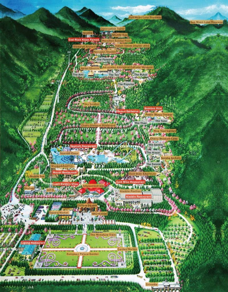 Ce parc spécialisé dans la culture aborigène de Formose (l'ancien nom de Taiwan), est situé à Yuchi Township, en plein milieu de l’île. Il est relié par un téléphérique de 1900 mètres au Sun Moon Lake, le plus grand lac de Taiwan, très touristique et est surtout le lieu de vie de la tribu Thao, l'une des nombreuses tribus autochtones. Le parc présente le plus grand jardin européen de Taiwan avec son palais qui héberge un restaurant. L'Amusement Isle concentre toutes les attractions du parc avec une zone espagnole, une zone Maya, une zone UFO, une zone intérieure Aladdin. Une grande partie du parc présente les différentes cultures des tribus autochtones avec des constructions traditionnelles, des spectacles et des restaurants de spécialités. Les visiteurs peuvent rejoindre la tour d'observation tout en haut de ce parc escarpé grâce à un télécabine au départ de la zone UFO. De cette tour d'observation, il est ensuite possible de rejoindre le Sun Moon Lake avec le téléphérique. La meilleure période pour profiter du parc est lors de la floraison des 2000 cerisiers qui a lieu entre février et mars selon les conditions météos.