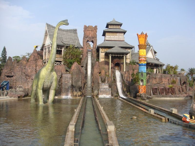 L'attraction la plus emblématique n'est pour une fois pas une montagne russe, c'est un parcours aquatique dans des rondins au milieu des dinosaures, Mighty Mountain Flume Adventure. Le parcours est ponctué de deux chutes tout en haut d'une montagne au milieu des temples.