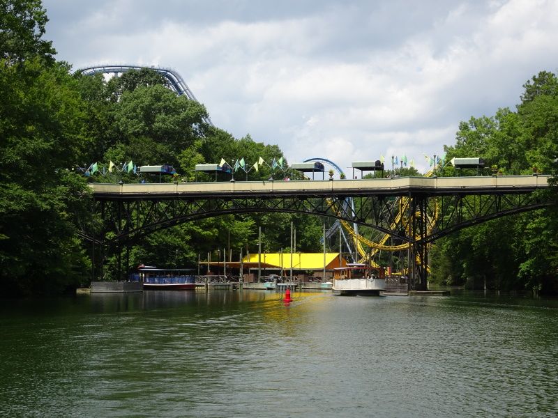 Il y a une montagne russe propulsée familiale avec un passage intérieur et une chute horizontale, Verbolten, du constructeur Zierer. Elle est surtout connue pour sa dernière descente qui plonge vers le lac. Nous avons adoré, nous la faisions en boucle !