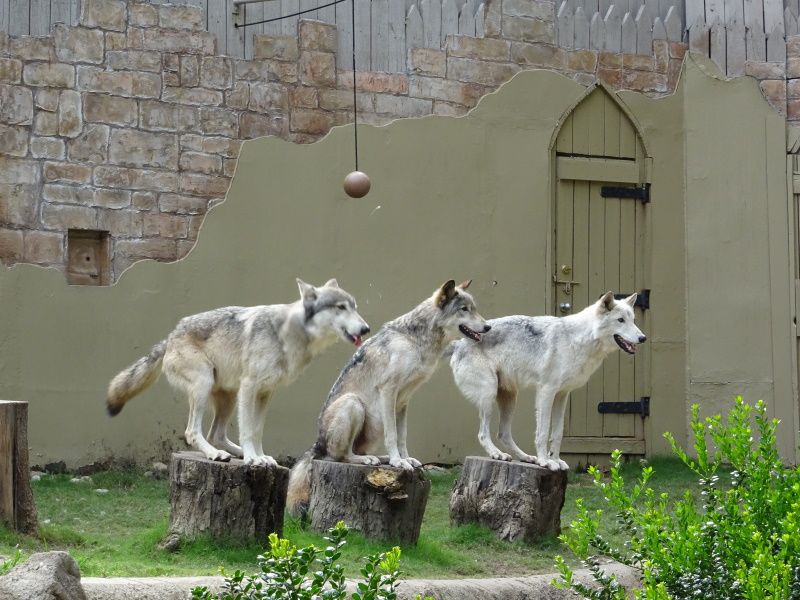 Il y a également un spectacle de loup et de rapaces et un théâtre.