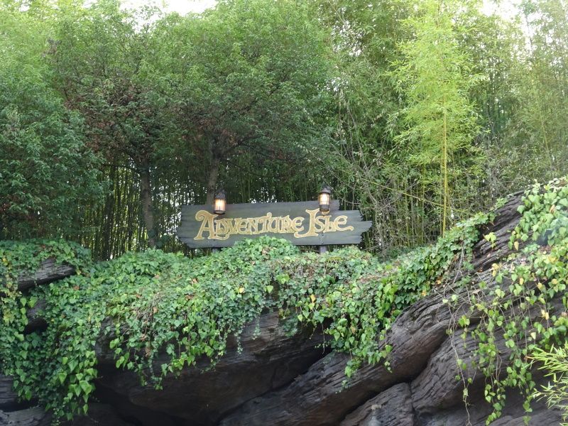 Nous nous perdons dans Adventure Isle à la recherche du trésor et après l'avoir trouvé nous traversons la rivière sur le très grand pont suspendu avec une vue sur le superbe Land.