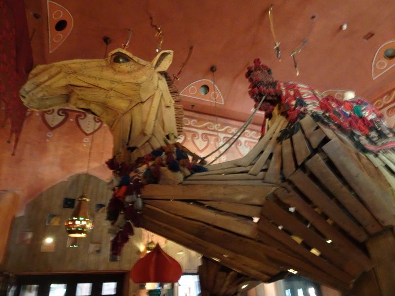 Le chameau de bois et les sabres plantés dans le plafond de la boutique de Shéhérazade