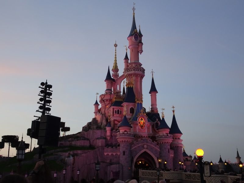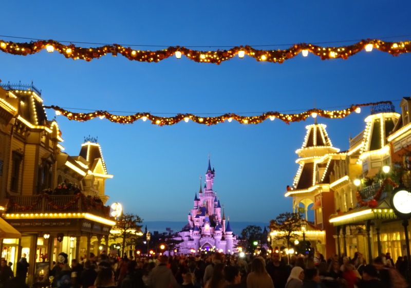 La nuit commence à tomber sur le parc, nous allons profiter des magnifiques illuminations et des décorations dans l'obscurité.
