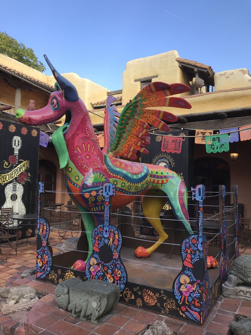 En sortant de la maison hantée, nous décidons d'aller découvrir toutes les décorations spéciales d'Halloween dans le fond de Frontierland sur le thème mexicain de la Fiesta de Los Muertos et bien sur l'univers du film d'animation Coco. Cette fête très colorée et très joyeuse avec une accompagnement de musique entraînante nous donne une fort bonne impression.