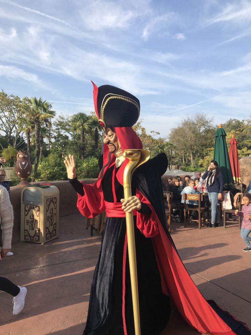 En dégustant un Fanta Dark Orange, une édition spéciale vendue dans le kiosque près du restaurant Colonel Hathi's Pizza Outpost qui est malheureusement fermé temporairement, nous avons la surprise de voir passer Jafar, l'un des méchants les plus réussis de l'univers Disney.