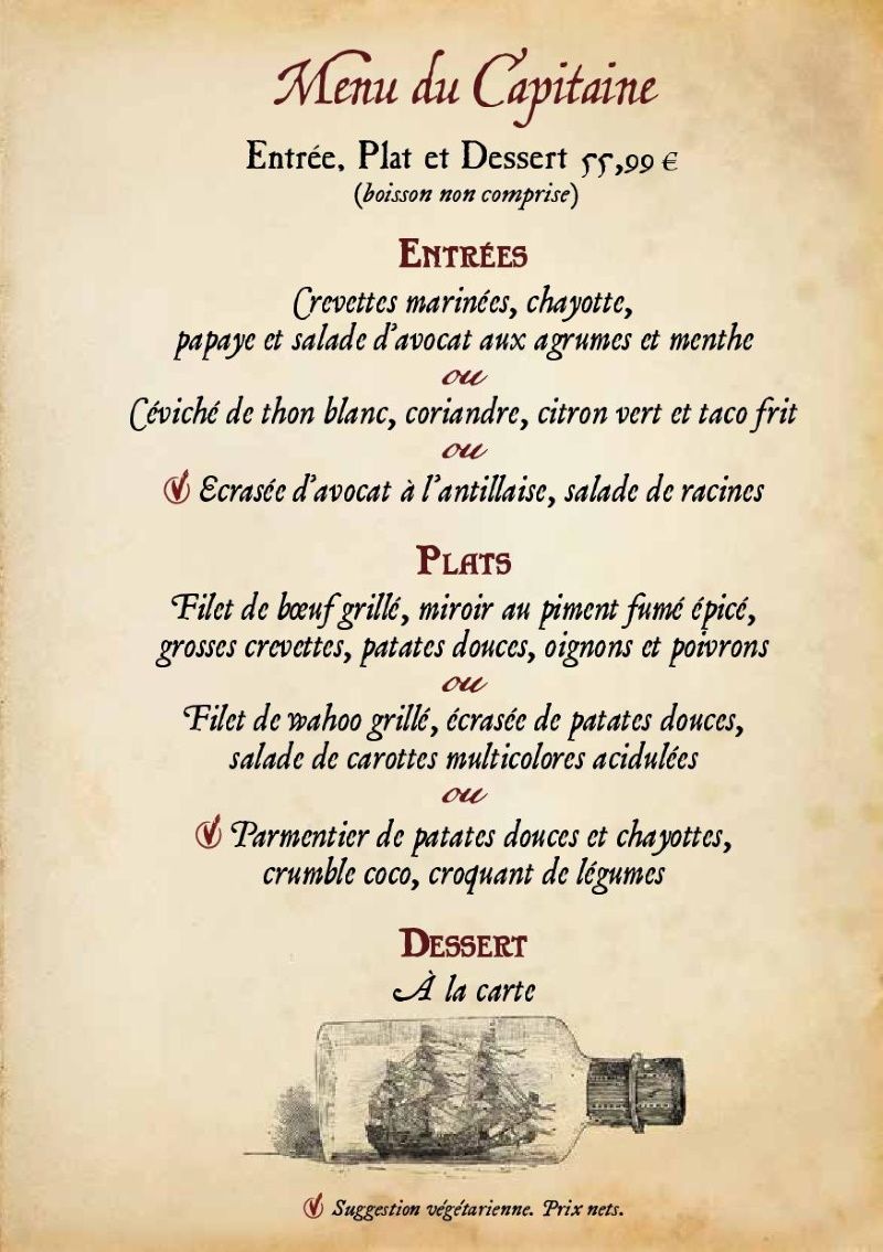 Ce restaurant, fourmille de détails sur les pirates et le ton est donné dés l'entrée. Vous êtes accueillis à bras ouvert par les aimables placiers et serveurs. La cuisine épicée et pleine de saveurs des îles nous a attiré dans ce lieu mystérieux et dépaysant. En effet, vous êtes installés dans la pénombre, assis confortablement dans des sièges en osier, avec pour seul éclairage une petite bougie sur votre table et des petites lanternes suspendues dans l'ensemble du restaurant. Retrouvez le menu complet ainsi que la carte des boissons à la fin de l'article.