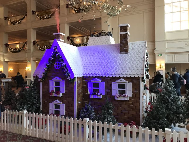 Nous gardons le meilleur pour la fin, le Disneyland Hotel. Il expose dans le hall une magnifique maison en pain d’épices, ça sent vraiment bon. Quel hôtel magique !