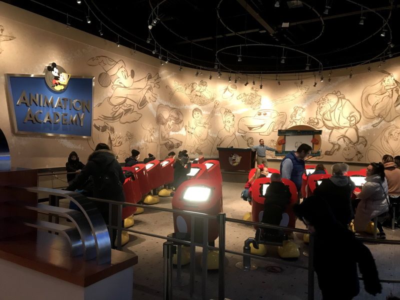 On rentre dans le bâtiment à coté du chapeau de sorcier, il y a une exposition ou on nous montre le fonctionnement d'un Zoetrope qu'on vous laisse découvrir également dans la vidéo, gare aux épileptiques ! Il y a aussi un atelier de dessin comme à Animal Kingdom et un point photo avec Olaf, c'est sympa.