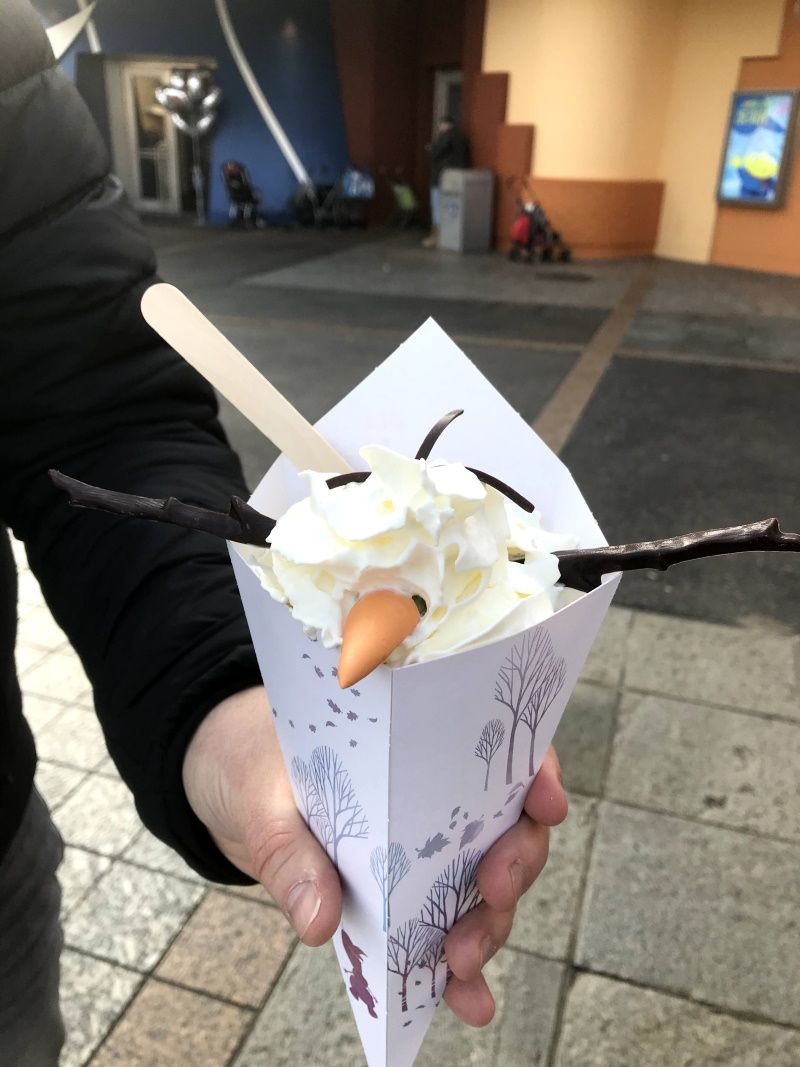 On termine notre matinée dans les Studios en goûtant des gourmandises spéciales de la saison de La Reine des Neiges avec le cornet de beignets Olaf (où nous avons cherché les beignets bien cachés au fond du cône), on s'est régalé. Julien a également testé le biscuit d'Anna à la confiture d'airelles.