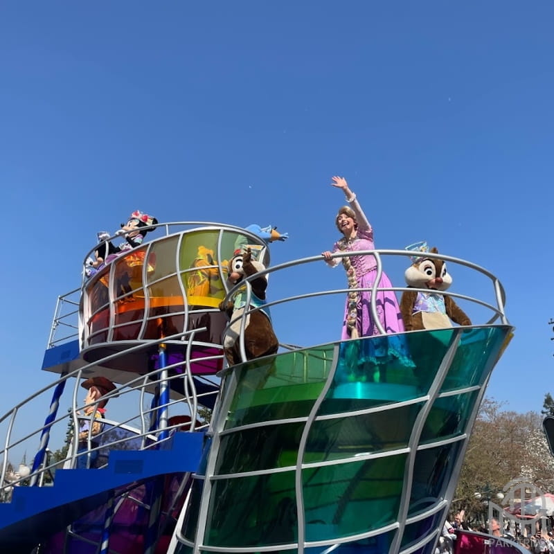 La parade spéciale 30ème anniversaire est vraiment une des meilleures qui soient. Les chars ne sont pas les plus extravagants mais la transparence rend les personnages presque accessibles. La musique est moderne et entraînante, la chorégraphie est un peu plus travaillée et quelques personnages viennent à proximité des visiteurs pour quelques interactions. Ce qui est vraiment bien, c'est que cette parade se transforme en show sur Central Plaza et qu'encore une fois la musique est superbe. Elle reprend des morceaux de classiques avec des arrangements modernes. C'est dynamique, joli, bien réalisé et synchronisé avec des éléments sur le château comme les jets d'eau et quelques feux d'artifice. Elle a lieu régulièrement donc c'est aussi un excellent point.