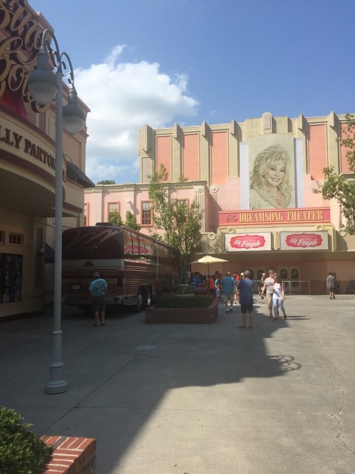 A gauche sur la photo, le bus de Dolly Parton