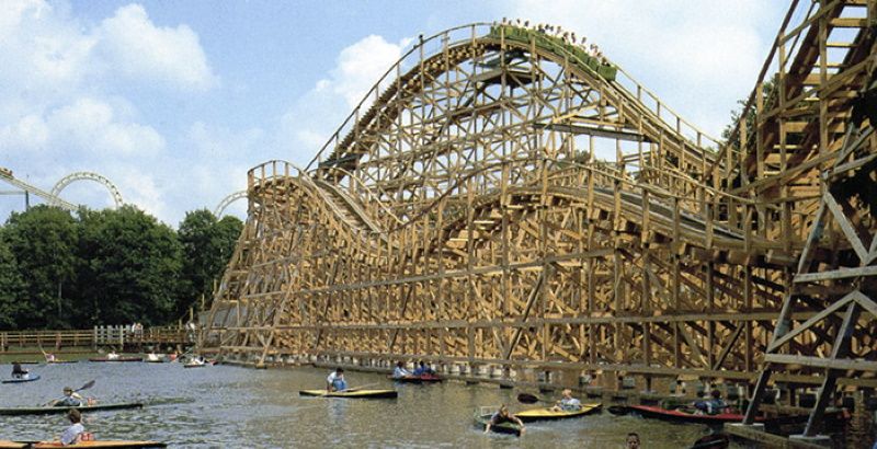 De l'autre coté de l'étang se trouve la double montagne russe en bois, Joris en de Draak (Georges et le Dragon) qui remplace Pegasus, une autre montagne russe en bois détruite en 2009. Quel était le constructeur de cette dernière ?
