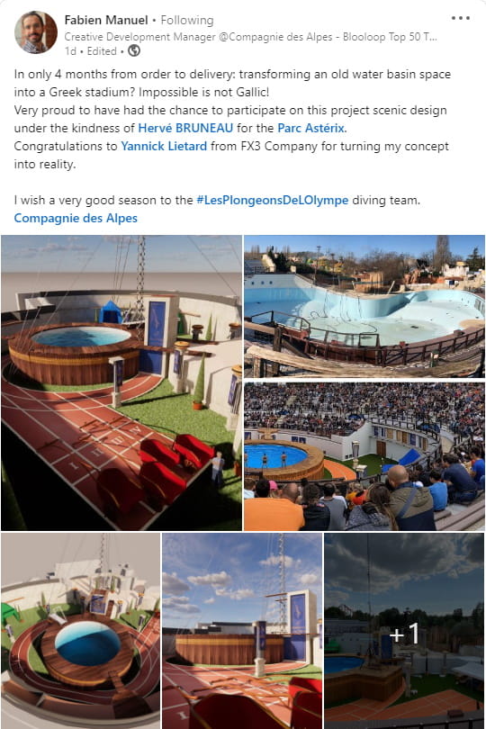 A la place du delphinarium, c'est un spectacle de plongeons qui a pris place. Des répétitions avaient lieu lors de notre visite. Ca n'a pas l'air très original mais c'est une bonne réutilisation du lieu. Le samedi, le parc était bien chargé et il aurait été appréciable d'avoir un spectacle en plus dans l'offre du parc pour absorber la foule. Ce sera maintenant chose faite avec les Plongeons de l'Olympe.