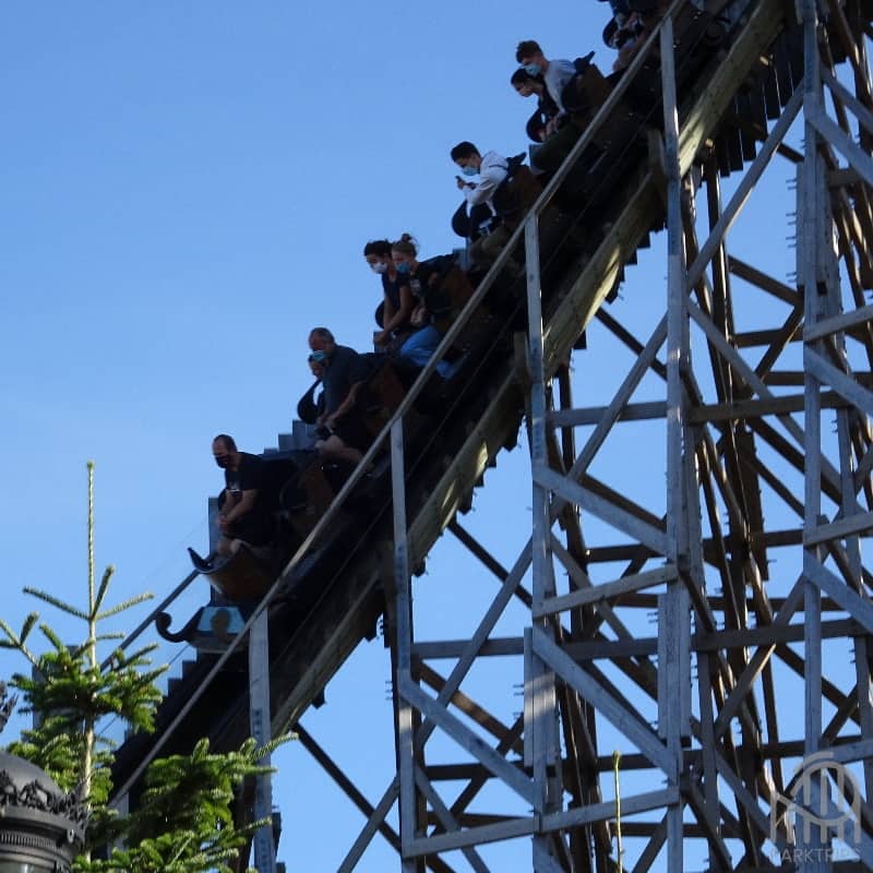 Les billets soirées vous donnent accès au parc de 18h à 22h. Arrivés à 17h45, on nous laisse tout de même rentrer dans le parc un peu avant l'horaire après un premier refus de principe. Comme on savait que Heidi The Ride fermait plus tôt pour éviter les nuisances sonores pour les résidents, on y fonce. L'attraction ferme à 18h30. Ouf, la file d'attente sort à l'extérieur du bâtiment mais c'est pour respecter la distanciation physique et ça avance plutôt vite. De quoi le faire 2 fois avant sa fermeture.