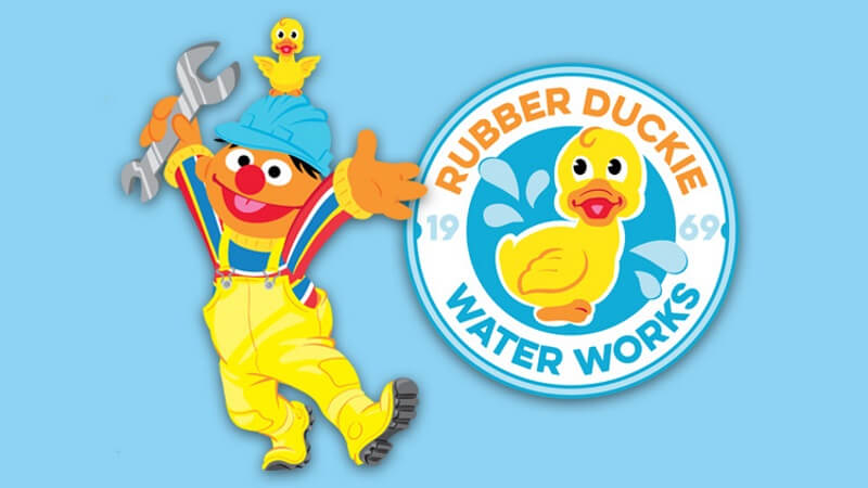 Vous allez vous éclabousser avec Ernie et Rubber Duckie dans leur nouvelle aire de jeux aquatiques au milieu des tuyaux, des fontaines et des jets d'eaux !