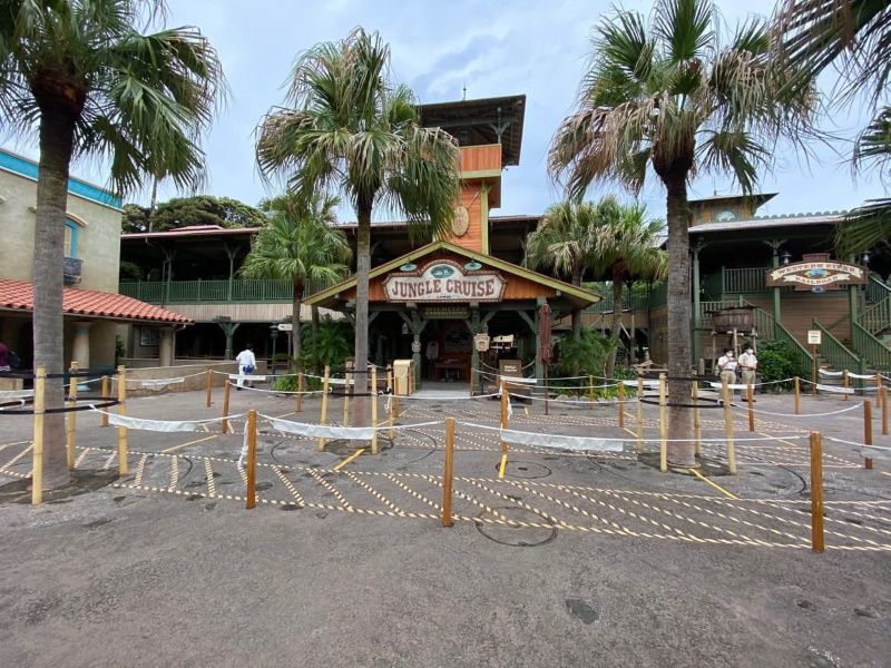 Des marquages au sol devant Jungle Cruise, crédit WDWNT.