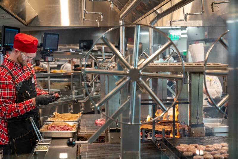 Le nouveau remplaçant du défunt restaurant Emeril's a enfin ouvert ses portes et apporte un peu plus de nouveautés dans le choix culinaire offert aux visiteurs. Situé au cœur du restaurant, et juste sous le regard affamé des gourmands, le grill à feu de bois géant est la pièce maîtresse du concept.