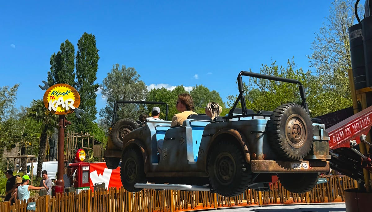 C’est au cœur de cette troisième phase que nous avons découvert la pièce maîtresse, Répart'ta kar, un Magic Bounce de Zamperla. Premier modèle de ce type en Europe, il est thématisé comme un garage de réparation pour les véhicules de Mahuka.
