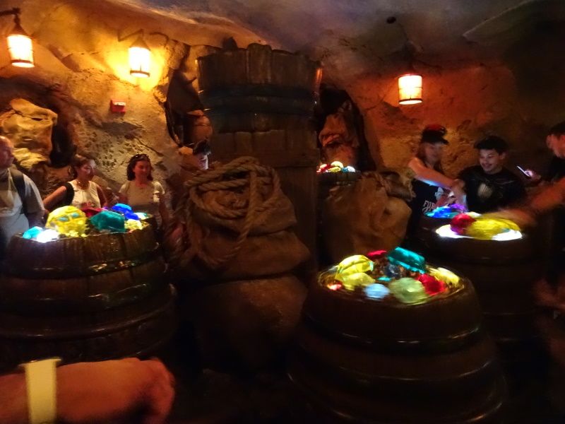Ça tombe bien, il y en a une à coté de Splash Mountain, et une autre après Big Thunder Mountain que nous testons de ce pas. Pareil, le parcours est totalement différent de celui de Paris, datant de plusieurs décennies, nous sommes vraiment secoués dans les virages, le circuit est vraiment tordus et brusque mais il est très fun ! C'est une bonne attraction. Nous passons par Country Bear Jamboree pour continuer à remplir notre sachet de bonbons et testons Pirates Of The Caribbean. Pour Halloween, des acteurs sont disséminés dans la file d'attente mais aussi dans l'attraction, ils nous font peur ces abrutis ! Cela donne un charme particulier au tour. Cependant, je préfère aussi la version de Paris, moins brouillonne et en plus il n'y a ici qu'une minable petite descente, bouh ! On se dépêche d'aller tester Space Mountain que l'on trouvera géniale, on rigole du début à la fin tellement nous sommes secoués dans les virages et les descentes très brusques, mais heureusement les sièges sont très confortables.