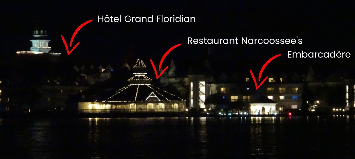 Ce restaurant se trouve près de l'embarcadère du Grand Floridian où vous pouvez prendre le bateau jusqu'au Magic Kingdom. Ce restaurant, comme au California Grill, met en pause le service pendant le spectacle et vous pouvez en profiter en restant à votre table ou en sortant. Le son du spectacle est retransmis par des haut parleurs pour vous le faire vivre.
