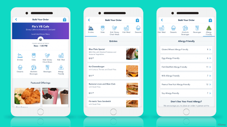 Lorsque vous vous rendez à Walt Disney World ou à Disneyland Californie, votre meilleur allié est votre mobile. Chaque resort dispose de sa propre application et vous permet de réserver des tables dans les différents restaurants, réserver vos fastpass (uniquement à Disney World) mais aussi d'éviter d'attendre dans les restaurants de type Quick Service (QSR).